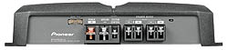 Конструкторы фирмы продолжают придерживаться концепции, что бортовое электронное устройство должно быть и сделано соответствующим образом, чтобы как минимум противостоять падению с разумной высоты их самих и падению на них сверху в меру тяжёлых предметов. Литой корпус усилителя как раз на это и рассчитан, в качестве украшения интерьера багажника он, может, и не сгодится, но и диссонансом смотреться не будет даже в дорогой отделке багажного отделения. Другая концепция разработчиков кажется более спорной — свести количество настроек к минимуму, даже ценой заметного снижения универсальности аппарата. Во-первых, здесь можно включить лишь фильтр НЧ, во-вторых, даже он здесь фиксированный (80 Гц). Частота выбрана, впрочем, самая ходовая, но если вы хотите идти своим путем (а также если собираетесь использовать усилитель для работы с фронтами), придётся воспользоваться внешним фильтром. Да, в продвинутых «головах» Pioneer недостатка в фильтрах нет, но им-то, скорее всего, достанутся и более пышные усилители. Из дополнительного оснащения предусмотрены входы высокого уровня. Номинал предохранителя 25 А. Ширина сильноточных зажимов 13 и 8,5 мм, плюсовой зажим, согласно древней традиции, омеднён.