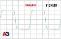 На нагрузку емкостного характера Pioneer реагирует так: ток потребления не изменяется, а на выходе появляются колебания частоты 400 кГц и относительной амплитуды 2,5%, что тоже мелочи.