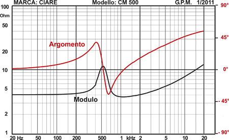 Вызывающая уважение автоакустика итальянского производства устроена весьма в традиционном стиле: с куполом классического диаметра 51 мм (у которого короткий волновод) и ферритовым магнитом. Первый предназначен в основном для коррекции АЧX вблизи частоты резонанса. Резонансная частота равно 555 Гц, что очень близко к заявке изготовителя. Традиционно точного и не склонного к инновациям. По форме колокола импедансного показателя можно сделать вывод о высоком уровне значения добротности, а несимметричная форма пика резонанса говорит о влиянии волновода. Это же доказывает то, что ниже частоты резонанса АЧХ головки падает намного быстрее установленных13 дБ/окт. В общем, хватит умственных упражнений, посмотрим, что представляет из себя итальянский «купол».