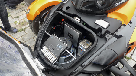 BRP Spyder, хозяин которого Сергей Богданов и детали его аудионачинки (то же самое качается «спайдера», только нарисованного)