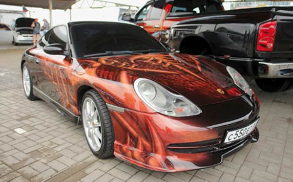 Исторически так сложилось, что питерцы первые включили в программу состязаний конкурс на аэрографию, потом это переняли на вооружение и другие регионы. Неудивительно, что подобные конкурсы в Питере неизменно разнообразнее и представительнее любых остальных. В нынешнем году, кроме самых разнообразных работ, выполненных по известным технологиям, представили и настоящую инновацию: дизайнер и художник-аэрограф из Пскова Игорь Москаленко явил публике два авто с 3D-аэрографией, в которых солнечные лучи, которые падали под разными углами, создают уникальные спецэффекты.