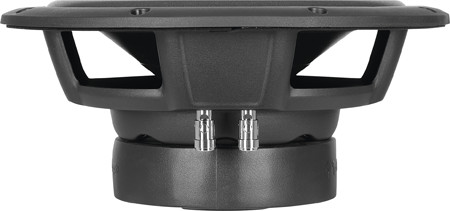 Сама конструкция головки тянет на anti-slim — по глубине монтажа она впереди соперников на полкорпуса (и это не эпитет). Хочется отметить, что это не плохо, просто при проектировании ящика не стоит об этом забывать. Отрицательным, в конструкции (хотя и не смертельным), я бы отметил тот момент, что благодаря её размеру имеются резонансы до 500 — 600 Гц. Нижняя шайба системы магнита плоская, наличие кольцевой проточки в таких корпусах не существенно. Центр диффузора, кстати, материалом ему служит металлизированный полипропилен, занимает опрокинутая внутрь сфера диаметром 106 мм, центральный колпачок, форма его напоминает звёзду. Ширина подвеса 24 мм. Осевое отверстие 20 мм. Внешний обод обрамлён только лишь полем клееного подвеса. Под акустический кабель оформлены крепления для клемм-«лопаточек». Прокладка провода к катушке осуществлена первым способом с исключительно скрупулезной фиксацией на конусе.