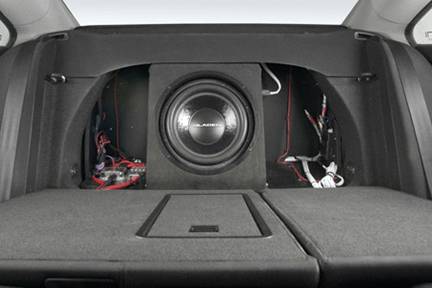 Если откинуть спинку на заднем сиденье, то на обозрение предстанут процессор, арматура силовой проводки и сабвуфер.
