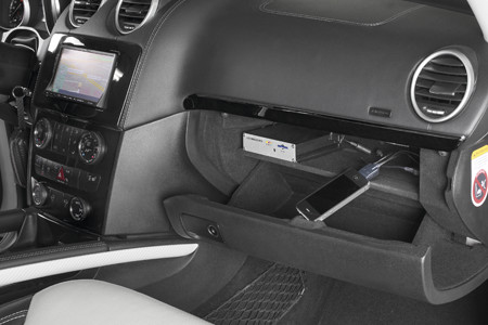 В перчаточном ящике расположен интерфейс для «i-десерта» и главный блок видеорегистратора.
