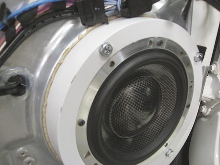 У этого автомобиля разборные двери, отсюда и доступ при монтаже к тылам динамика.