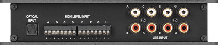 Далее производитель C-DSP рекомендует до момента подсоединения к процессорному выходу произвести калибровку входной чувствительности. Стоит заметить, что в данном случае разговор идет относительно единственной операции, которая может осуществляться регуляторами аналогового типа, расположенными на крышке сверху. Применяется в данном случае элементарная технология: максимальный сигнал подается с автомагнитолы или другого источника, последовательно чувствительность выставляется на децл меньше нижнего входного ограничения, о чем дает сигнал индикатор, находящийся в центральной части регулировочного блока.