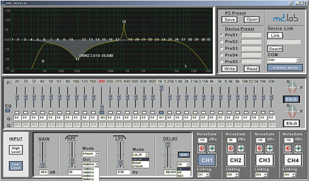 Внутреннее ПО претерпело фундаментальные изменения. 1-ой версией процессора ограничивалась фантазия в части разделения полосок частот прожиточным минимумом срез частотой 20Гц-20кГц, однако крутизна 24 или 12 дБ/окт., только Баттвервортовская характеристика. В новейшей версии сохранена свобода подбора частоты среза, однако добавили к ней широчайший выбор крутизны – 12-48 дБ/окт., с остановками через 6 дБ/окт. При различных выбираемых крутизнах возможен выбор фильтра: неоклассический Линквиц-Райли, классический Баттерворт, реже применяемый Бессель с лучшими переходными свойствами.