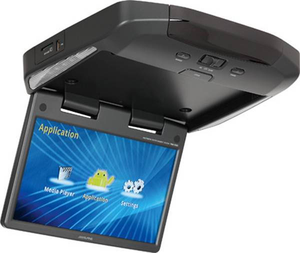Сейчас пришло уже время представлять новейший потолочный монитор Alpine TMX-310U. По внешнему виду монитор, как и множество других, функциями определяется облик прибора со всей определённостью, но слот для дисковой загрузки уже на нем найти нельзя. Но можно отыскать слот для SD-карт и 2 (а если хорошо искать, то и 3) USB-гнезда. Слот для SD-карты и 1-ое USB-гнездо располагаются в точности там, где ранее можно было найти только промежуток для загрузки диска — на левой стене по ходу движения. 2-ое USB-гнездо выводится на разъём сверху корпуса — возможно размещение кабеля в общий жгут скрываемой проводки и вывод гнезда, к примеру, в подлокотник между сиденьями спереди. Для нахождения 3-го гнезда, необходимо будет немного повозиться, придется снимать верхнюю корпусную крышку (а там тринадцать саморезов). Для чего оно? Да тут-то как раз очень интересно.