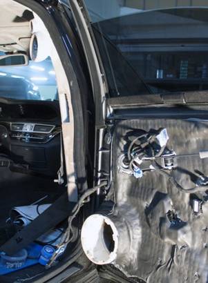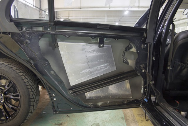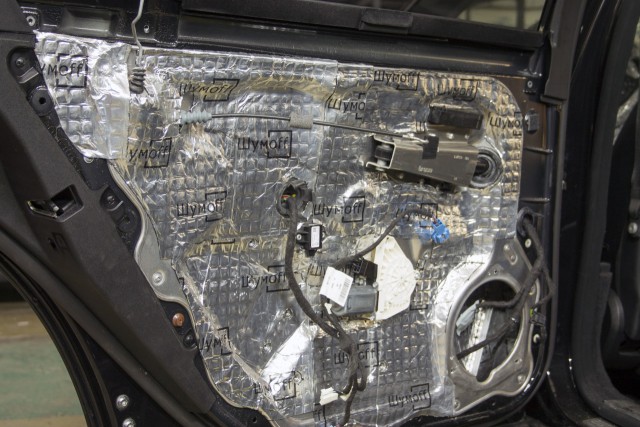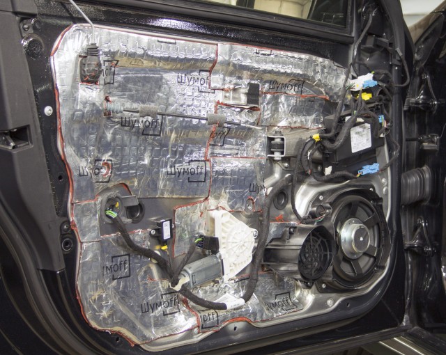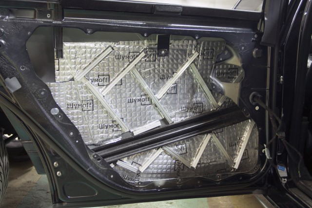 устанавливается слой такого демпфирующего материала, как «ШумоFF», сверху которого дюралевые элементы жесткости.