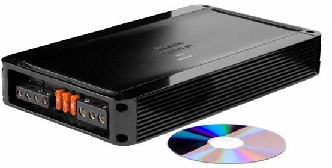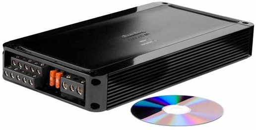 Двухканальный усилитель, наоборот, самый компактный. Ширина его равна 210 мм. А вот с мощностью не повезло — 125 Вт. Предохранители имеют номинал в 2x25А. Разъемы и регулировки устройства (слева направо): переключатель фильтрового типа, множитель ФНЧ х10, ФНЧ-регулятор, множитель ФВЧ х10, ФВЧ-регулятор, регулятор уровнего входа, линейный вход и выход. А вот с регулировками происходит почти полная свобода: наличие не только ПФ, но и ФВЧ, причем если для последнего регулируемый диапазон простирается от 50 до 4 кГц, то для ФВЧ еще интереснее и лучше — от 50 до 5 кГц. Благодаря помощи линейного выхода не регуляции сигнал можно передать на следующие усилители. ФВЧ имеет нижнее значение в 20 Гц. Такой факт вполне возможно использовать для сабвуфера и как сабсоник. А вот фильтрованные диапазоны подобраны так, что варьируя включение и также отключение множителей и частоту среза можно приобрести чуть ли не абсолютно любой диапазон частот. То есть усилитель оснащен еще и использованием для фазоинверторного крупного сабвуфера, и на любое звено 3-х и более системы полос. Любимец публики (Третий) Polk Audio с названием PA D4000.4 Сравнение с неизвестным производительным диском диаметром 12 см Спрос на трехканальники, оказывается, не так велик, как хотели бы производители, поэтому на рынок их практически и не выпускают. Усилитель с четырьмя каналами по размерам, как и полагается, занимает промежуток между моноблоком, двухканальником и пятиканальником. По сути, это два PA D2000.2, которые находятся в одном корпусе размера полуторной ширины (320 мм) с возможностями соответствия и характеристиками (мощность выхода составляет, в частности, такие же 125 Вт). Однако в связи с двухканальником существуют и некоторые важные отличительные черты: наличие переключателя 4CH-ST ровно по центру; отсутствие линейного выхода. Стоит обратить внимание, что предохранители имеют разные номиналы — 35А и 40. Важно! У акустических кабелей коммутация не стандартная «право-лево», а «верх-низ», которые встречаются гораздо реже, то есть клеммы верха — это «плюс», а низа — «минус». Разъемы и регулировки устройства (слева направо): каналы тыла — линейный вход; наверху — множитель ФНЧ х10, множитель ФВЧ х10; внизу — регулятор уровня входа, регулятор ФНЧ, регулятор ФВЧ, переключатель фильтрового типа; внизу по центру — переключатель режима работы. 4CH-ST как волшебный переключатель представляет собой встроенный сигнальный разветвитель. Это значит — неважно сколько имеется линейных выходов у главного устройства, будет достаточно и даже одного для подключения такого усилителя. Также это очень хороший вариант, чтобы разрулить так называемую «поканалку» (то есть фильтрация с помощью усилителя двухполосной фронтальной пары, на которую сигнал приходит с соответствующего выхода главного устройства. Универсал (Четвёртый)  Автомобильные усилители Polk Audio и модель с названием PA D5000.5 Сравнение с неизвестным производительным диском диаметром 12 см Он является универсалом и создан специально для тех, кого не устраивают предыдущие модели из-за «сложностей», «высокой цены» и тому подобное. В моноблоктном корпусе поместились четырехканальники и сам моноблок. В связи пожертвования мощности всех каналов (чуть ниже об этом будет написано) получился серьезный компонент, который более доступный по стоимости, чем отдельные 