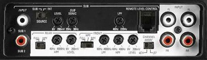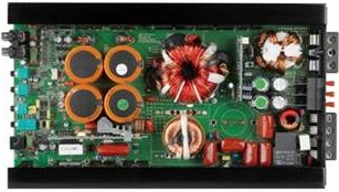 Polk Audio с названием PA D1000.1 Сравнение с неизвестным производительным диском диаметром 12 см Моноблок с названием располагает в своем арсенале ширину с самым большим показателем (340 мм) и такую же мощность на канал (500 Вт). Разъемы и регулировки устройства (слева направо): регуляторный разъем дистанции басового уровня, ФНЧ-регулятор, бас-буст, регулятор уровня входа, линейный вход и выход. Для подключения динамиков используются спаренные клеммы, и это все имеет прозрачный намек на подключение сразу четырехжильным кабелем двухобмоточного сабвуфера (по примеру: Neotech NES-5009, либо же однообмоточным сабвуфером, но в двух количествах).  Внутри вид выглядит вот так Линейный выход используется, как вариант — его подключением к головному устройству с линейным одним выходом, а с линейного моноблоктного выхода нужно снять сигнал на абсолютно другой и любой усилитель. Малыш (Второй) Polk Audio с названием PA D2000.2 Сравнение с неизвестным производительным диском диаметром 12 см