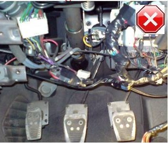 Проводка свисает и может быть намотана на рулевой вал или оказаться под ногами.